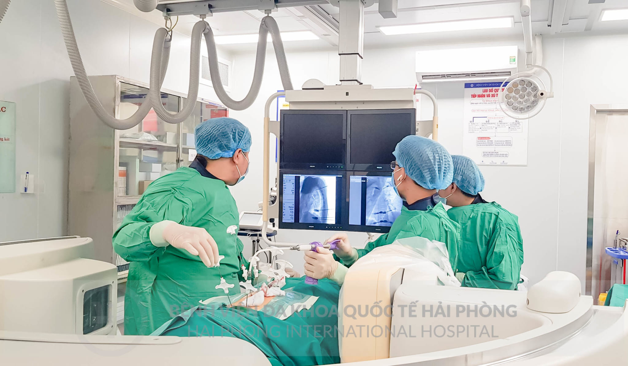 Với phát hiện này, đội ngũ chuyên gia, bác sĩ Khoa Ngoại chấn thương chỉnh hình của Bệnh viện đã nhanh chóng tiến hành hội chẩn và đưa ra phương pháp điều trị tốt nhất cho người bệnh đó là: Phẫu thuật tạo hình thân đốt sống D3,9,11 bằng bơm cement sinh học không bóng. Đến ngày 15/5, dưới sự hỗ trợ của hệ thống máy chụp số hóa xóa nền (DSA), ekip phẫu thuật đã thực hiện việc bơm xi măng sinh học dạng lỏng vào các đốt sống gãy để hàn gắn, kết nối các mảnh gãy lại với nhau, giải quyết việc xô lệch các mảnh gãy gây đau đớn cho người bệnh. Ca phẫu thuật thành công tốt đẹp, sau phẫu thuật cột sống của bệnh nhân đỡ đau nhiều và có thể ngồi dậy, đi lại ngay ngày thứ nhất.